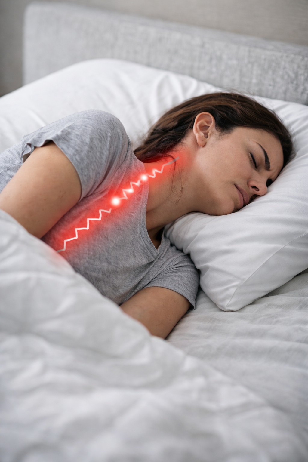 Wenn die Wirbelsäule im Schlaf nicht gerade ausgerichtet ist, können Druckpunkte entstehen, die den Schlafkomfort deutlich verringern.